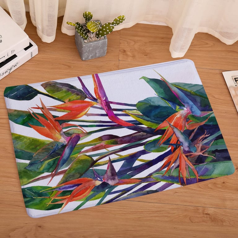 Bathroom mat with leaves