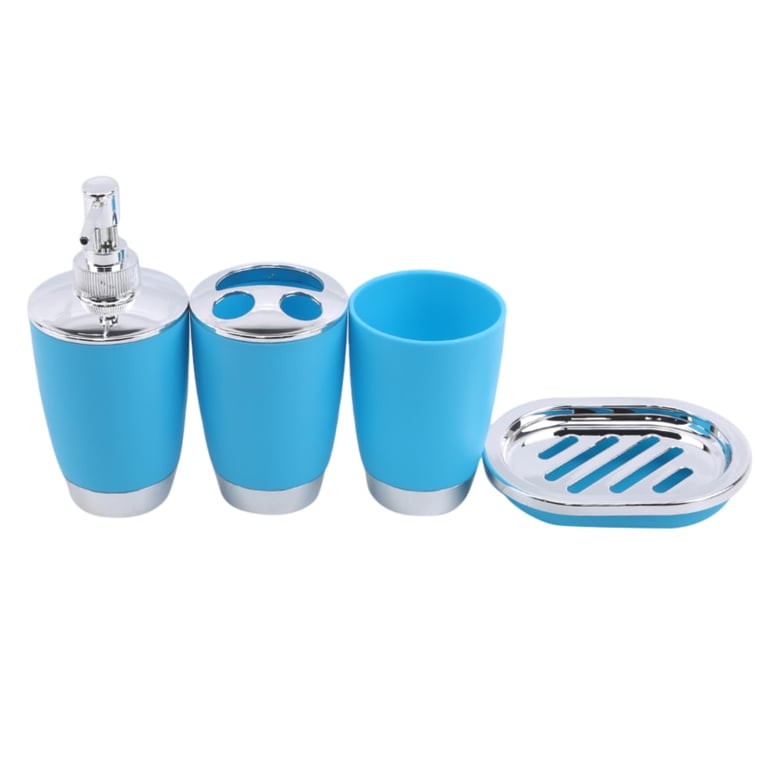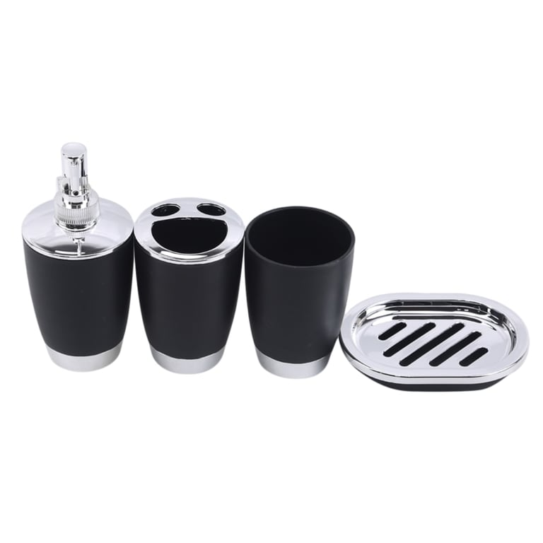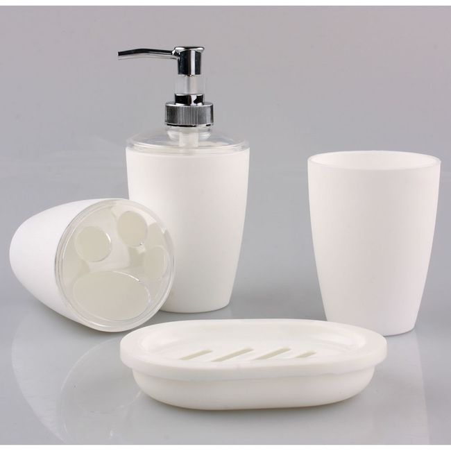 Includes soap dispenser, toothbrush holder, cup, and soap dish.