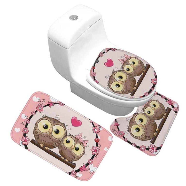 A practical set of mats featuring an owl design that will be useful to you and brighten up any bathroom.