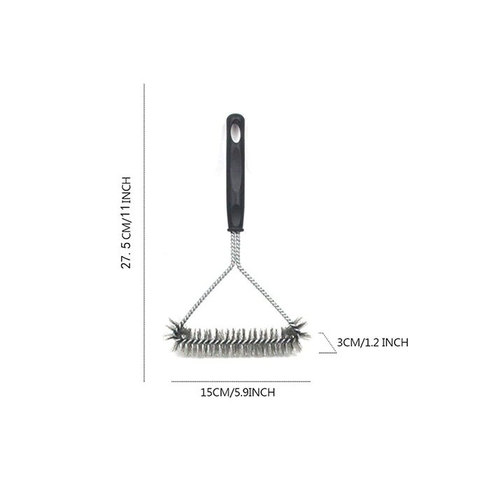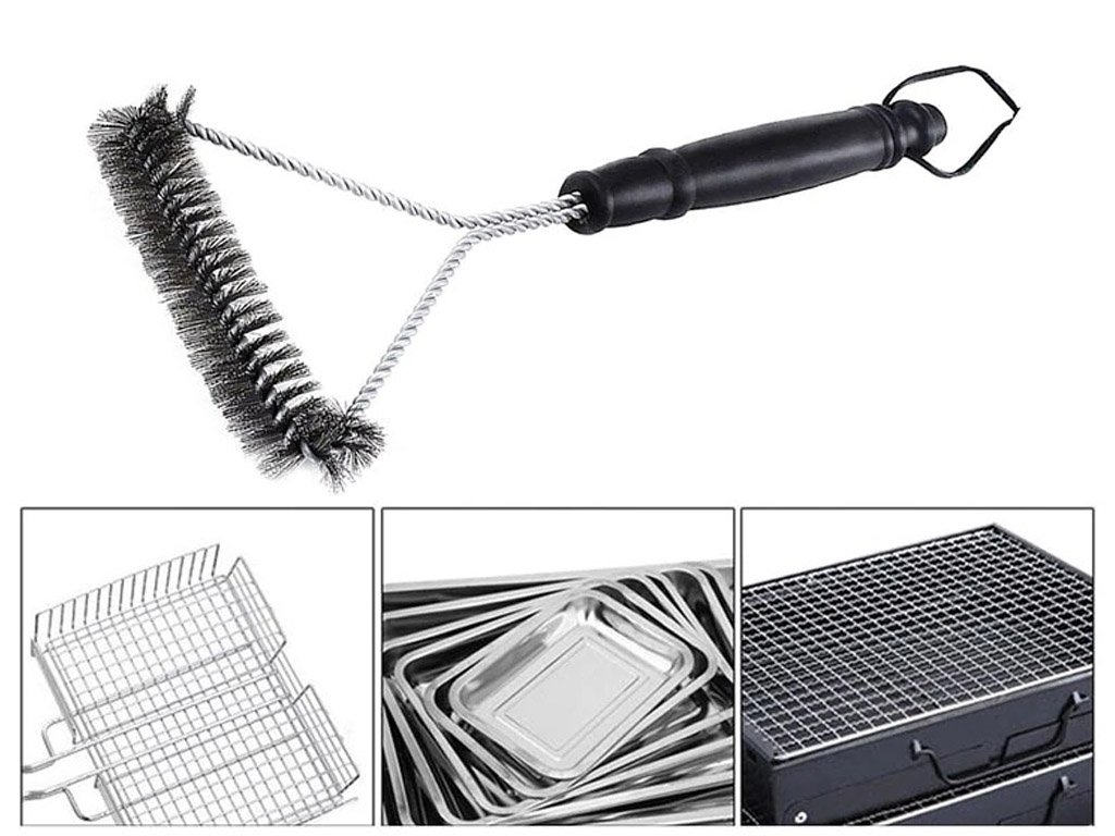 The large wire brush for cleaning grills effectively removes food residues and burnt grease from the grill grate.