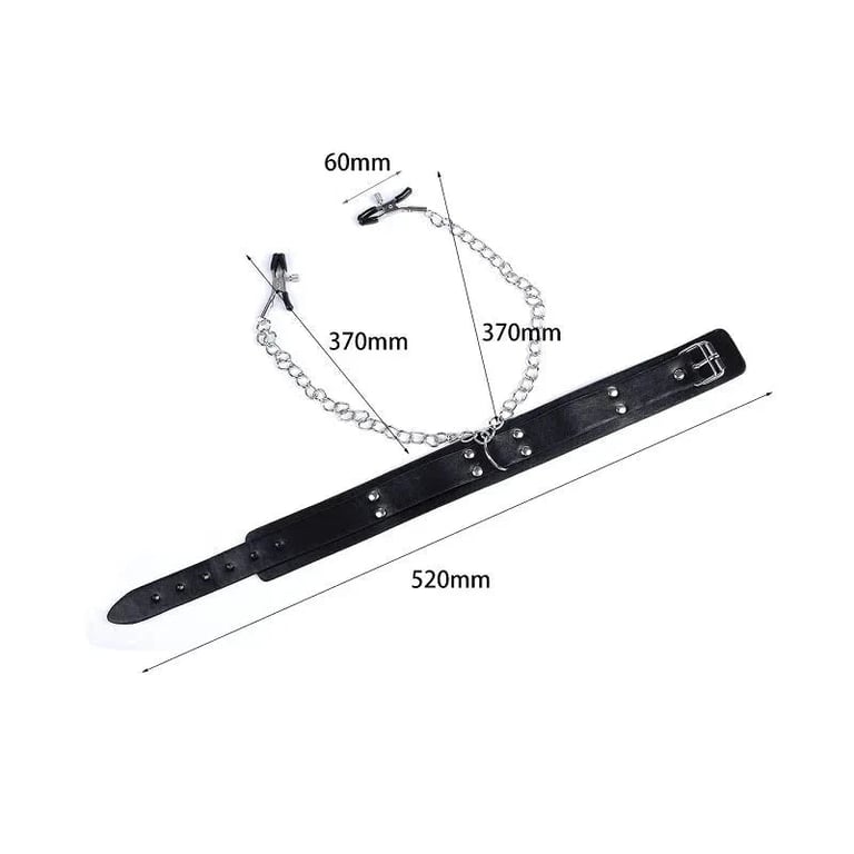 This stylish and functional BDSM collar with nipple clamps delivers a unique experience of dominance and submission. Made from high-quality synthetic leather with an adjustable fastener for comfortable wear. The metal details ensure durability and safety during use.