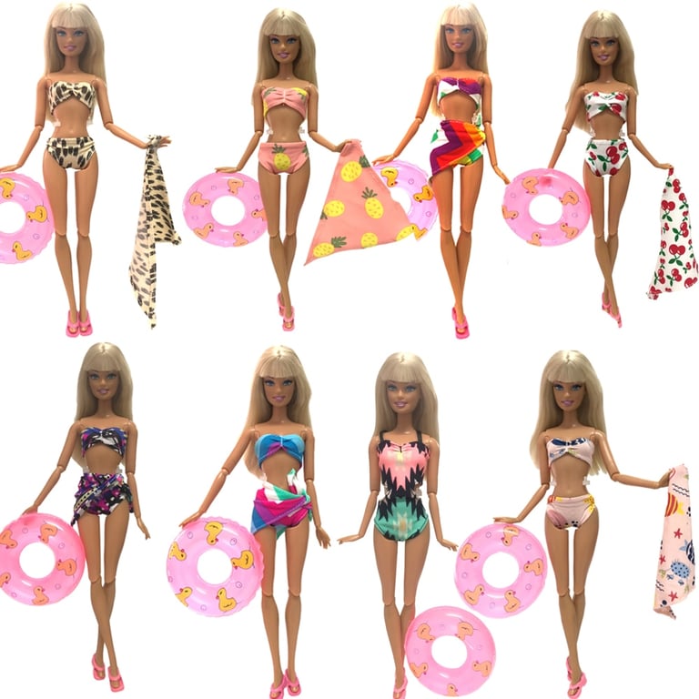 Beach outfits with inflatable rings for dolls