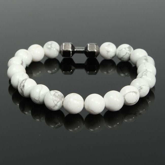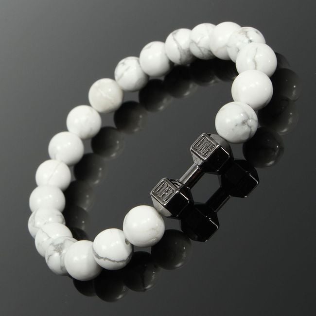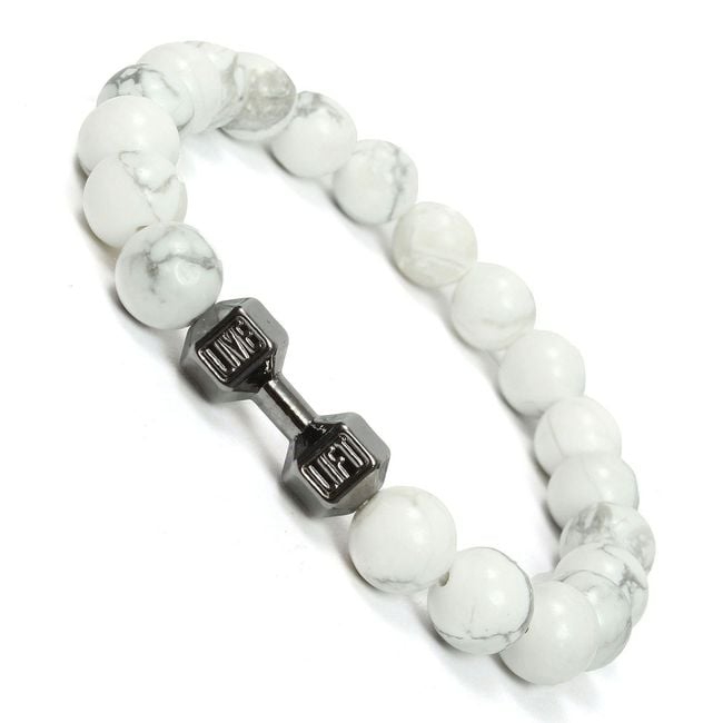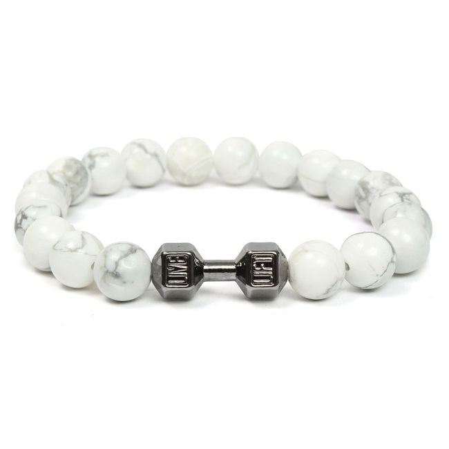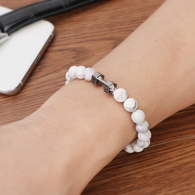 This bracelet will delight all fitness enthusiasts. It consists of white beads and a small charm in the shape of a dumbbell. It will be a great accessory and an expression of your personality. Treat yourself. An amazing gift also for friends who need motivation.