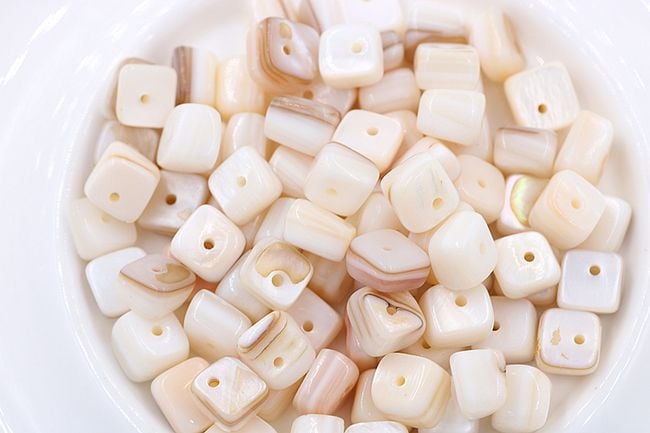 Cream-coloured beads are suitable for making necklaces and jewellery. The package contains 30 pieces.