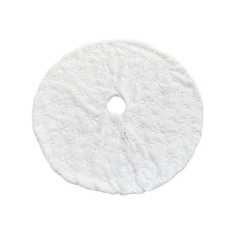 A beautiful Christmas tree skirt with snowflake patterns that covers the unsightly stand holding your Christmas tree.