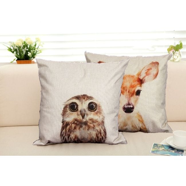 Charming cushion cover featuring a beautiful fawn or owl print. An ideal accessory to brighten up your home, for example on a sofa or bed. Choose from two amazing options.