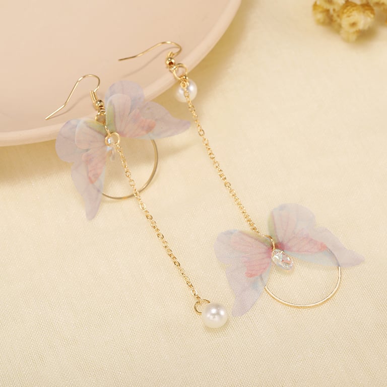 Beautiful drop earrings with fairy butterflies and pearls