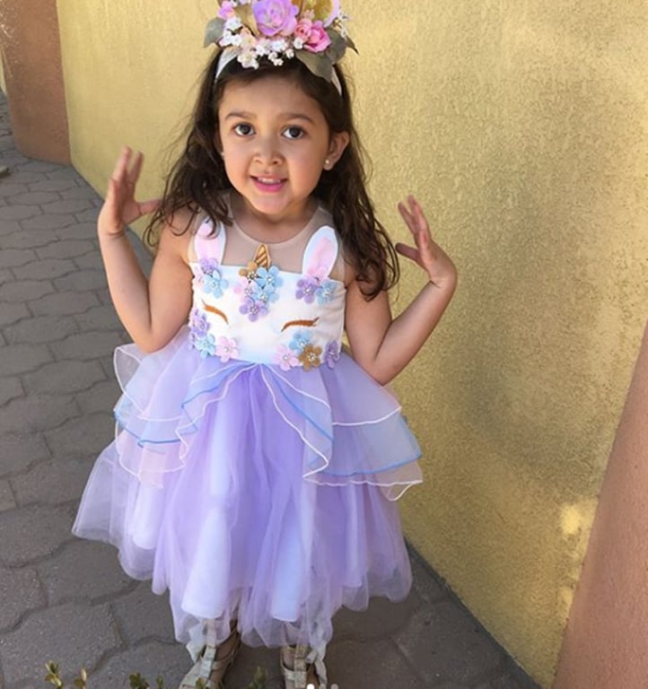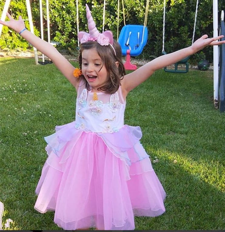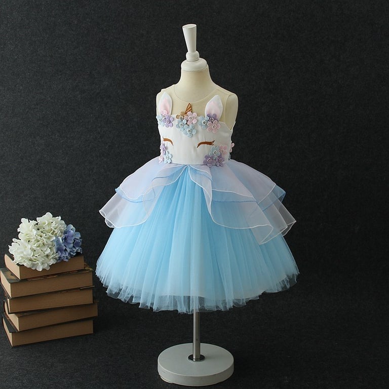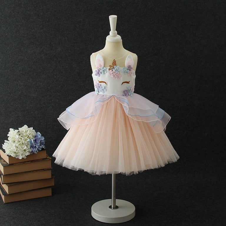 Beautiful girls' dress, which consists of an upper part designed as a unicorn.