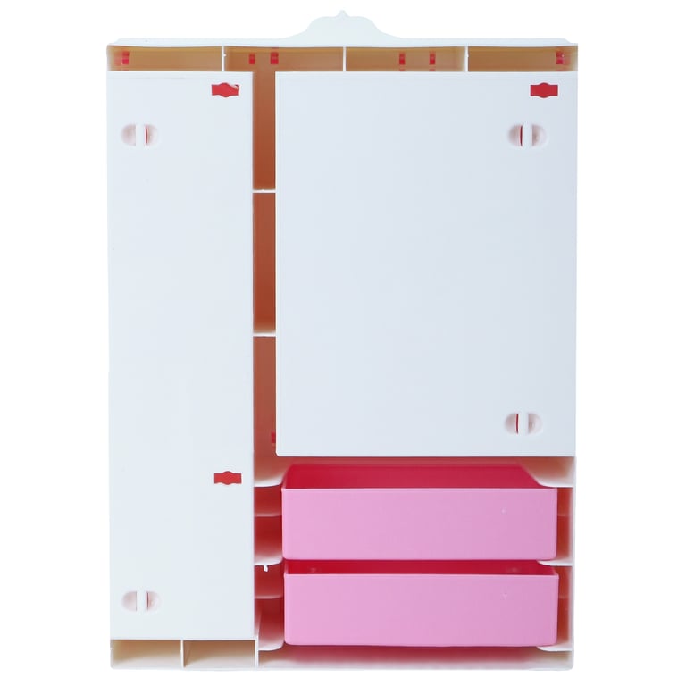 Beautiful pink plastic wardrobe with mirror + 10 pink hangers for Barbie doll