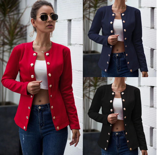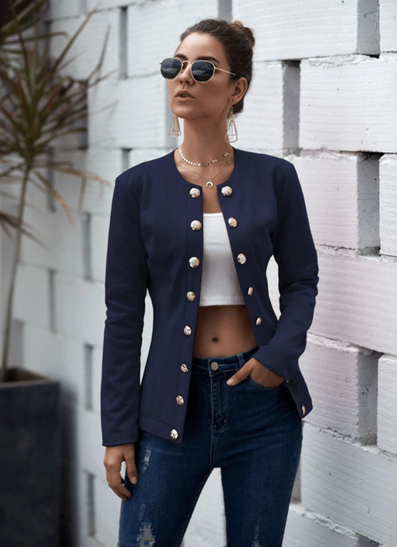 Beautiful transitional women's jacket with silver buttons.