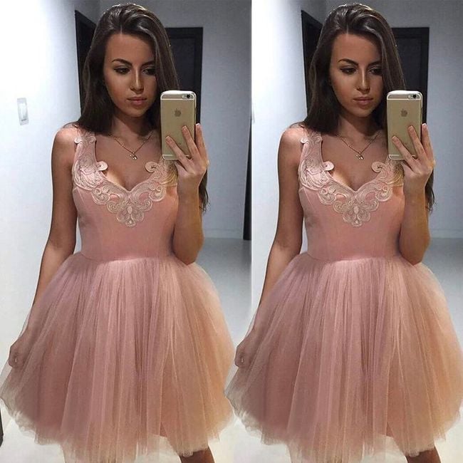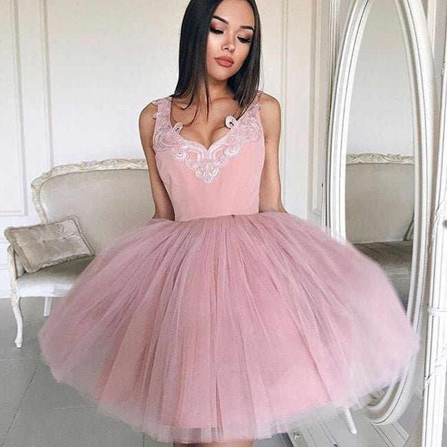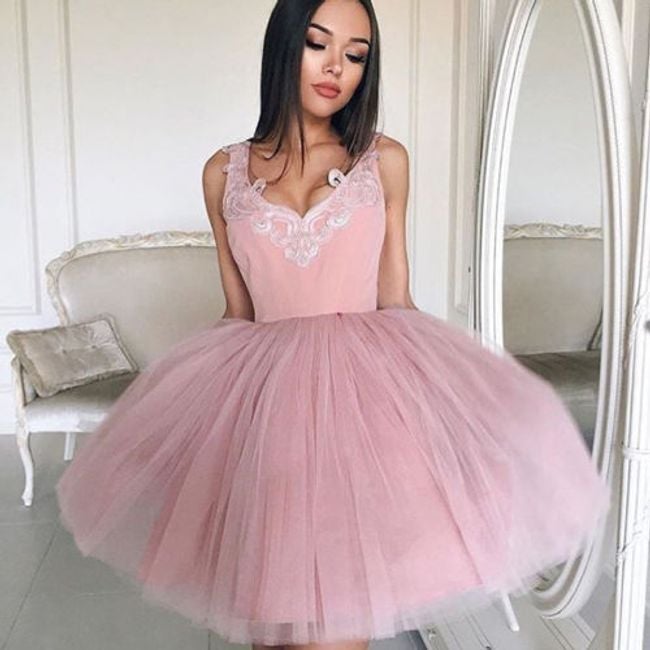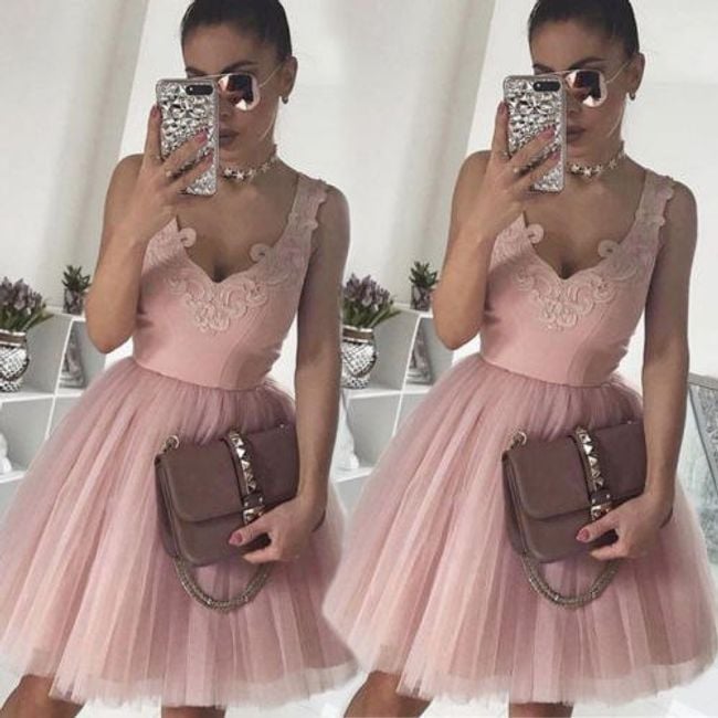 The dress features a beautiful, rich skirt and a beautifully designed neckline.