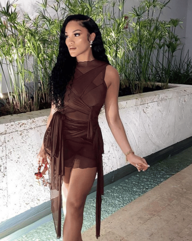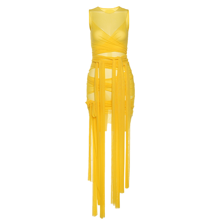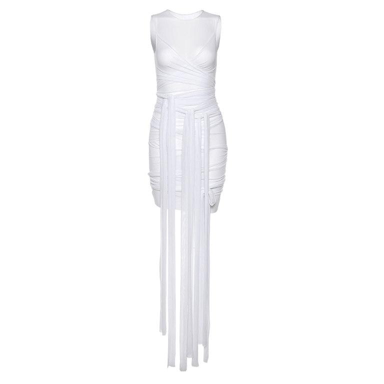 • This dress is sleeveless, with a round neck, featuring an original strap design, in a slim, very short sexy bodycon cut.