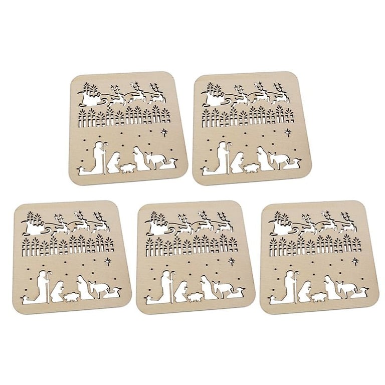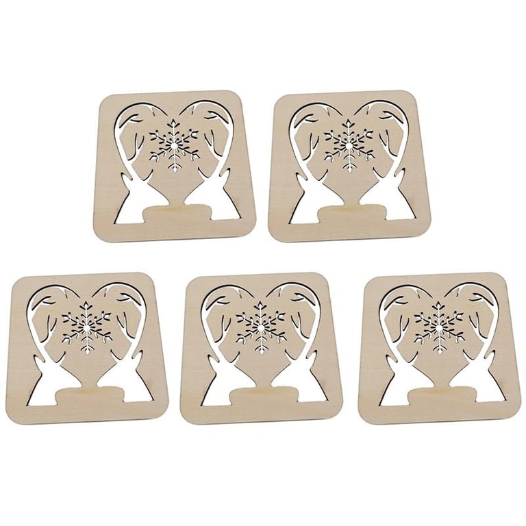 Beautiful wooden coasters in the colour of natural wood with a cut-out Christmas design are perfect for any Christmas Eve table.