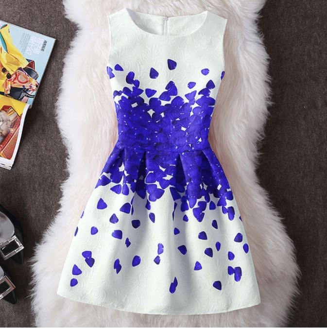 Beautifully decorated women's summer dress with an A-line skirt.