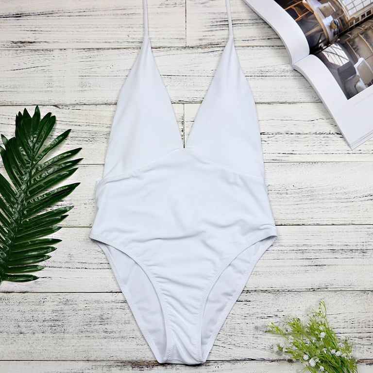 Beautifully feminine, interesting one-piece women's swimsuit with spaghetti straps.