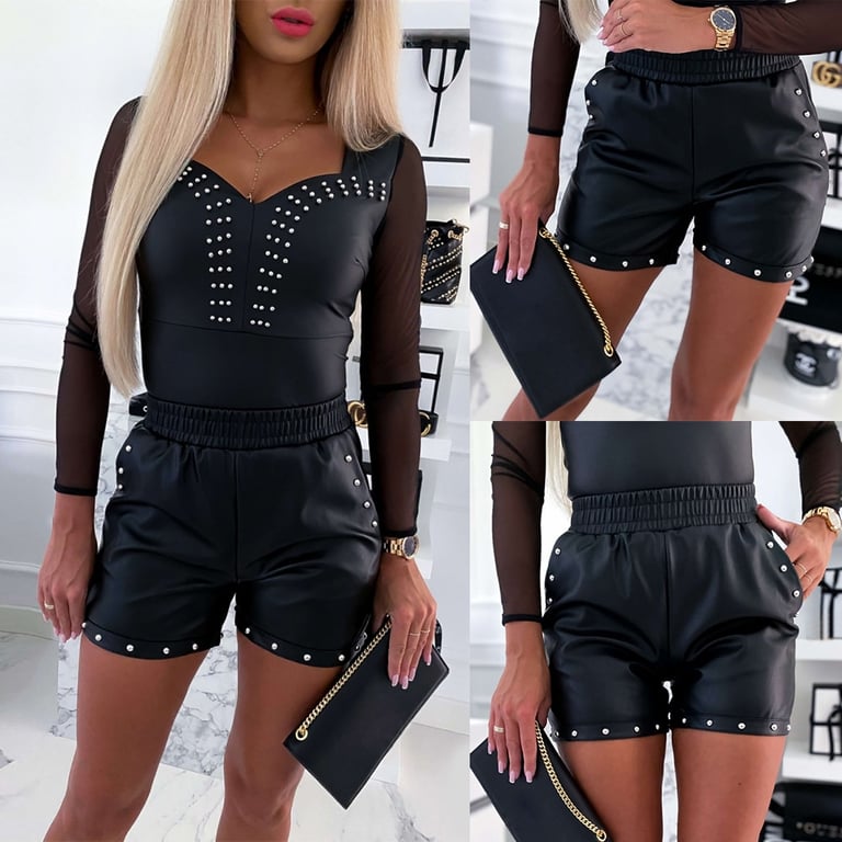 • Tags: Women's shorts, with pockets, pockets, leather, artificial leather, studs
