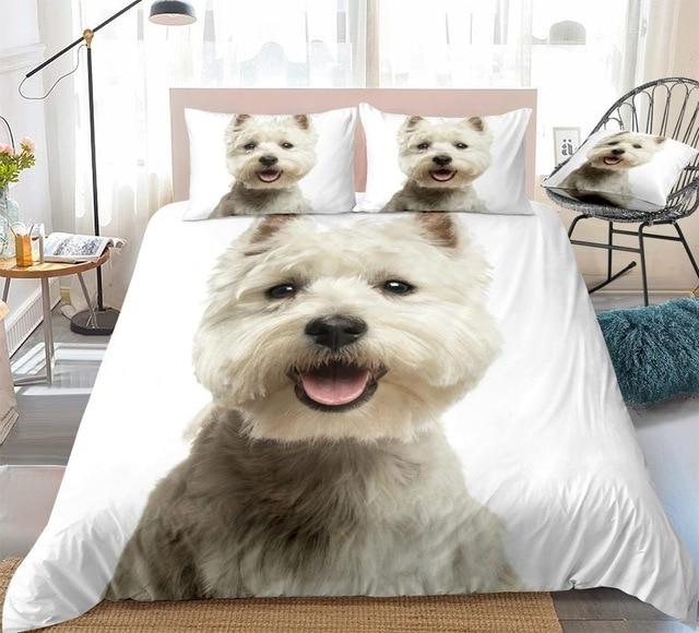 Beautiful bedding with a picture of a dog. Very nice design.