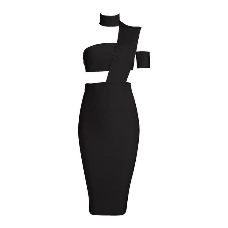 Two pieces: one-shoulder top + skirt with one adjustable strap around the neck.