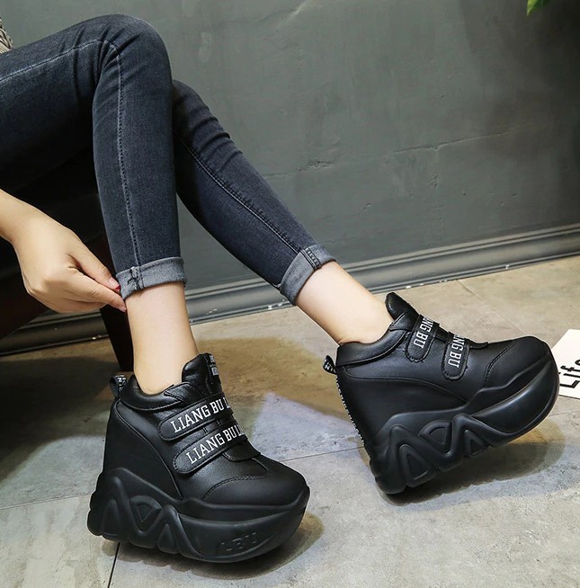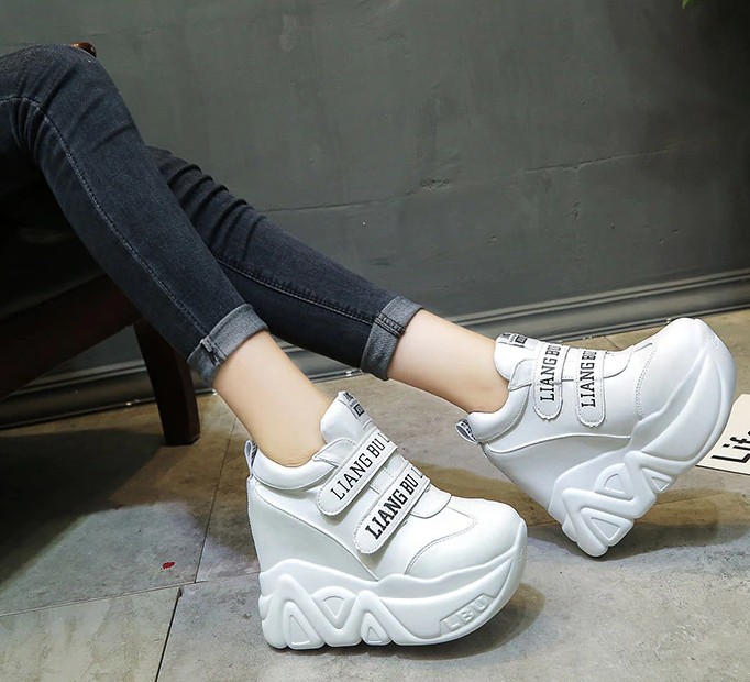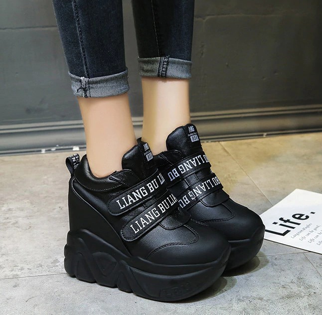 You will love these high platform sneakers. The sneakers have a Velcro fastening.