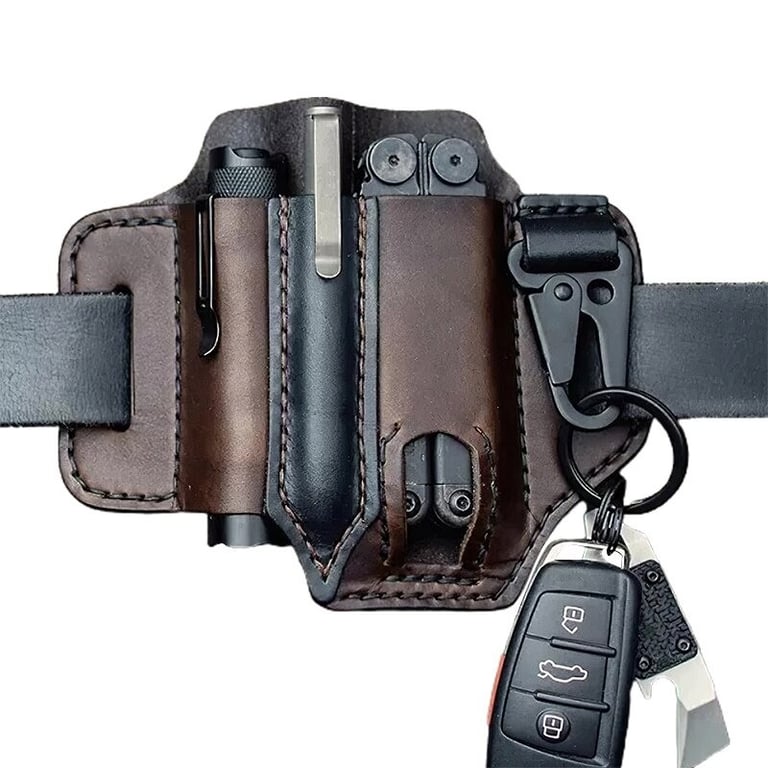This belt pouch is the ideal choice for active people who enjoy spending time outdoors. The pockets are suitable for storing small items, such as pens and knives. It is made from high-quality leather material. Installation is easy, simply slide it onto your belt.
