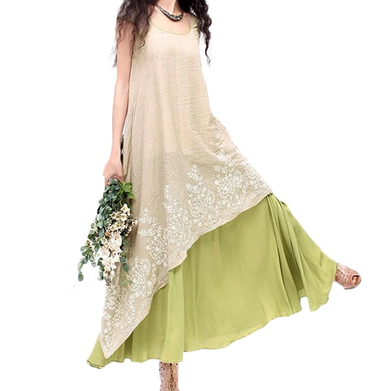 Comfortable sleeveless women's dress. With an asymmetrical layer made of high-quality material.