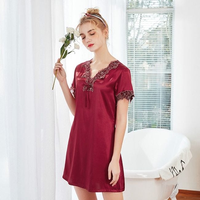 Elegant women's nightdress with lace details.