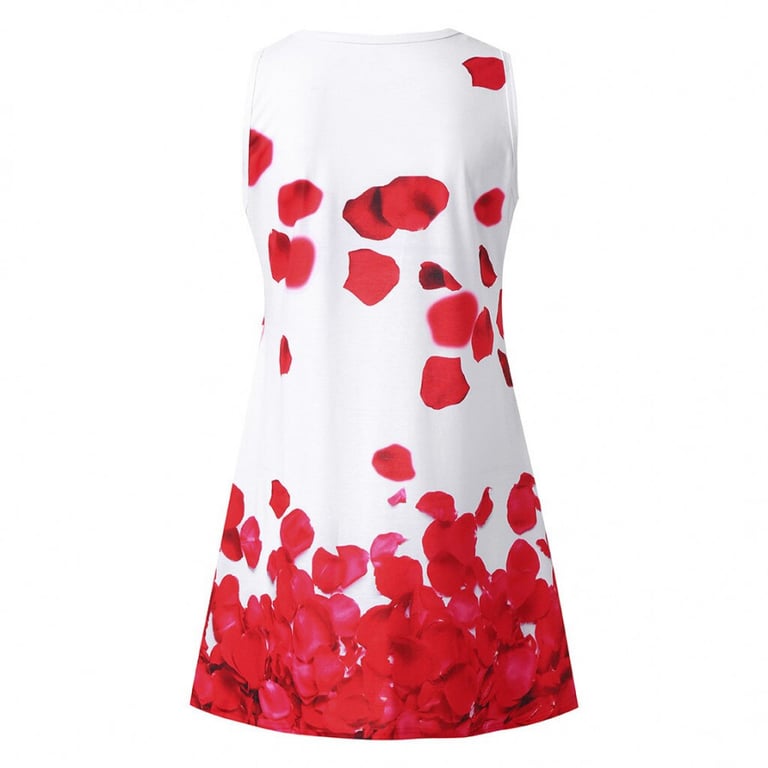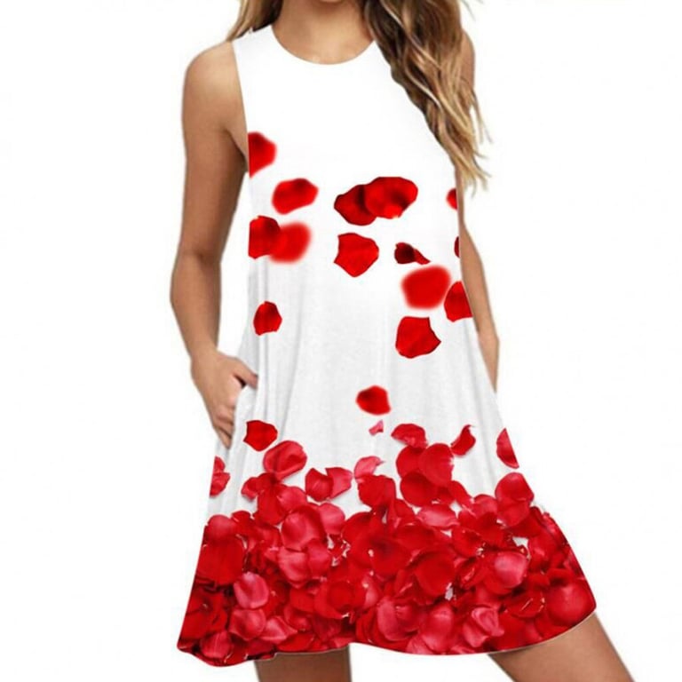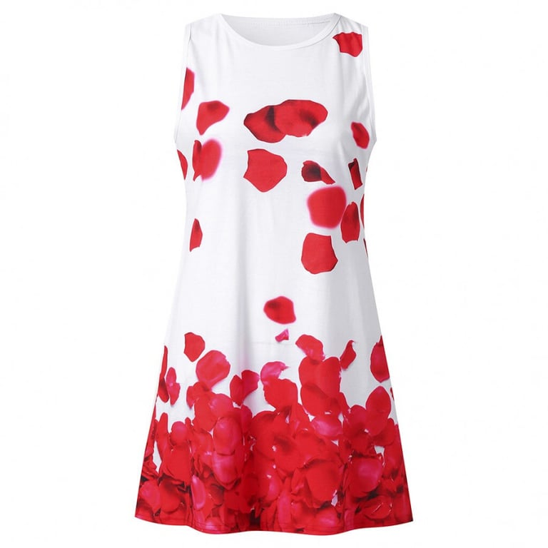 Women's short summer dress without sleeves. Loose fit with side pockets. Colourful floral print.