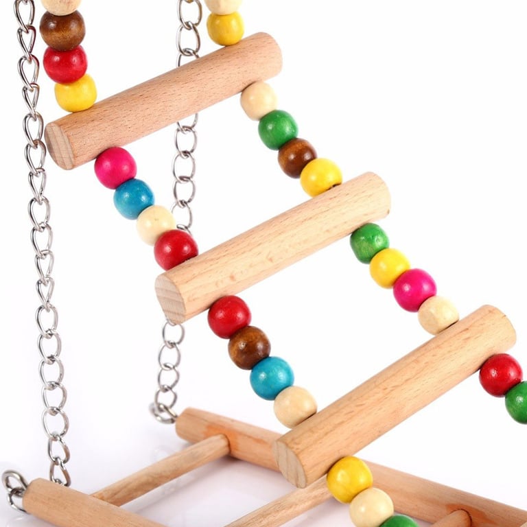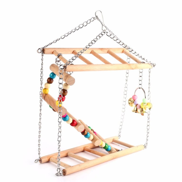 Wooden hanging swing for birds, parrots. Ladders and climbing frames for bird entertainment. Swing with bells.