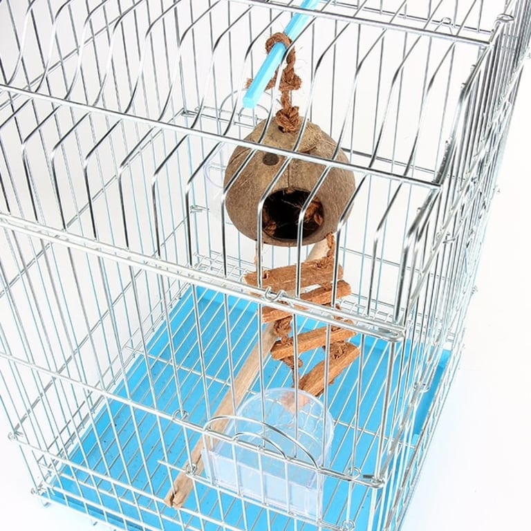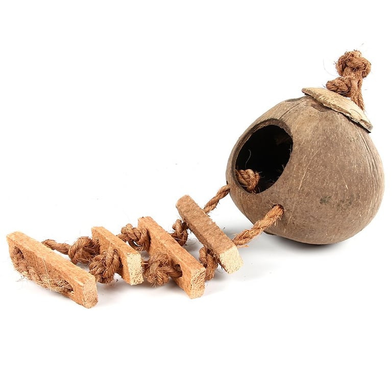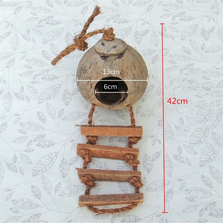 Round birdhouse for parrots with the option to hang. Round opening into the house and a hanging ladder.
