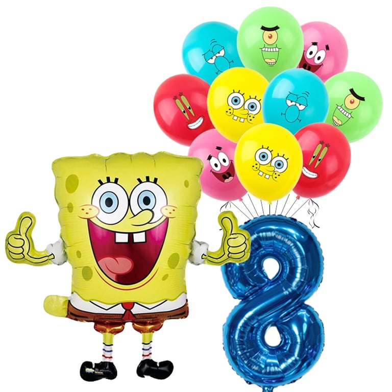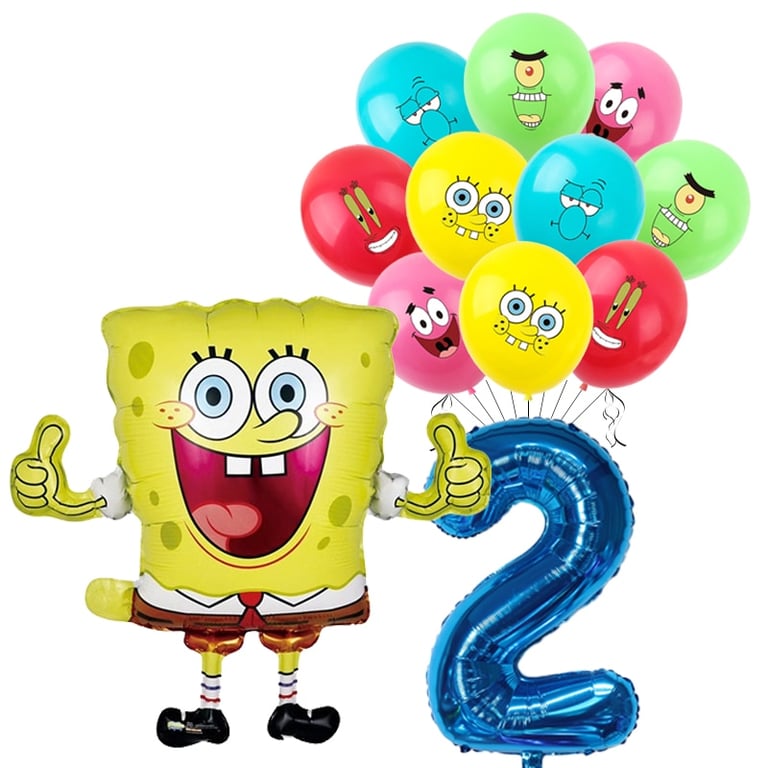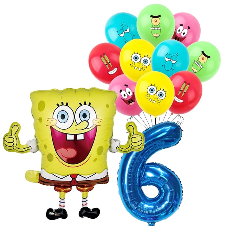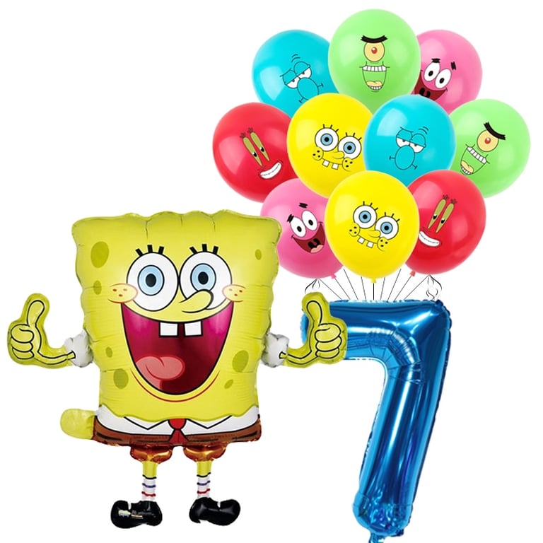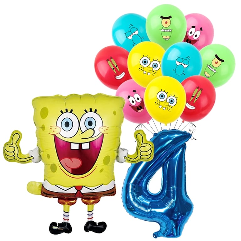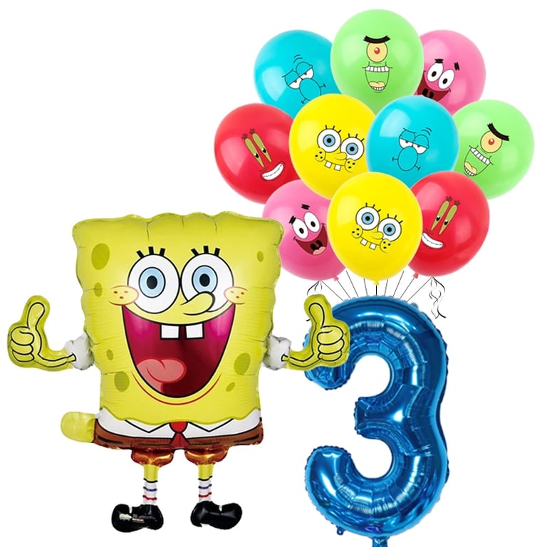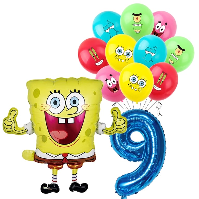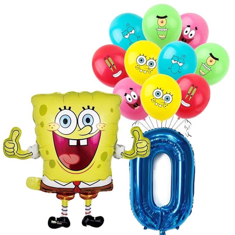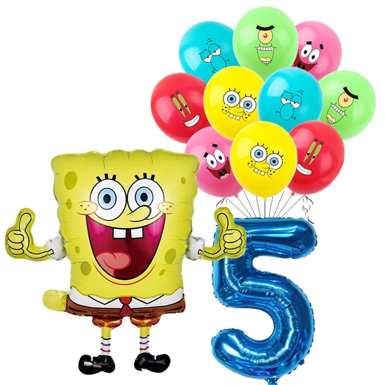 Birthday balloon set with number and SpongeBob and his friends theme – blue
