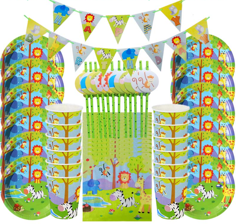 Tags: napkins, tablecloth, plates, cups, decorations, party decorations, safari, birthday, party, set