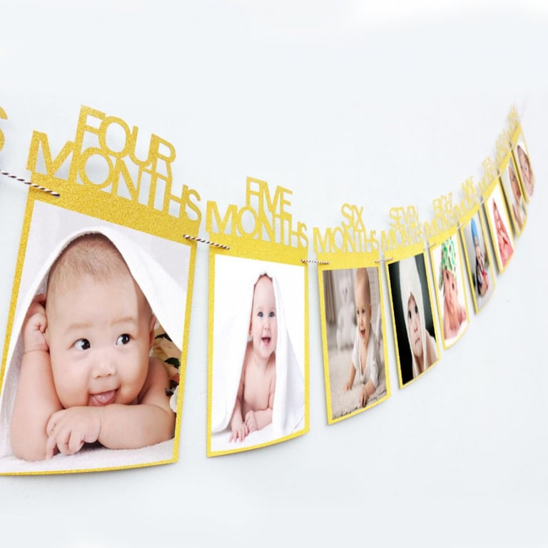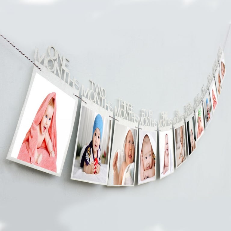Create a beautiful decoration with memories. A monthly banner with frames for photos from your baby's first year.