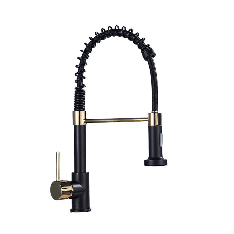 Black and gold kitchen tap