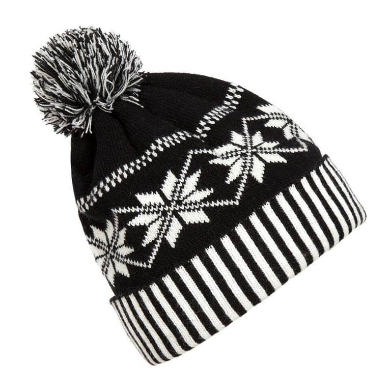Black and White Pom Pom Winter Hat