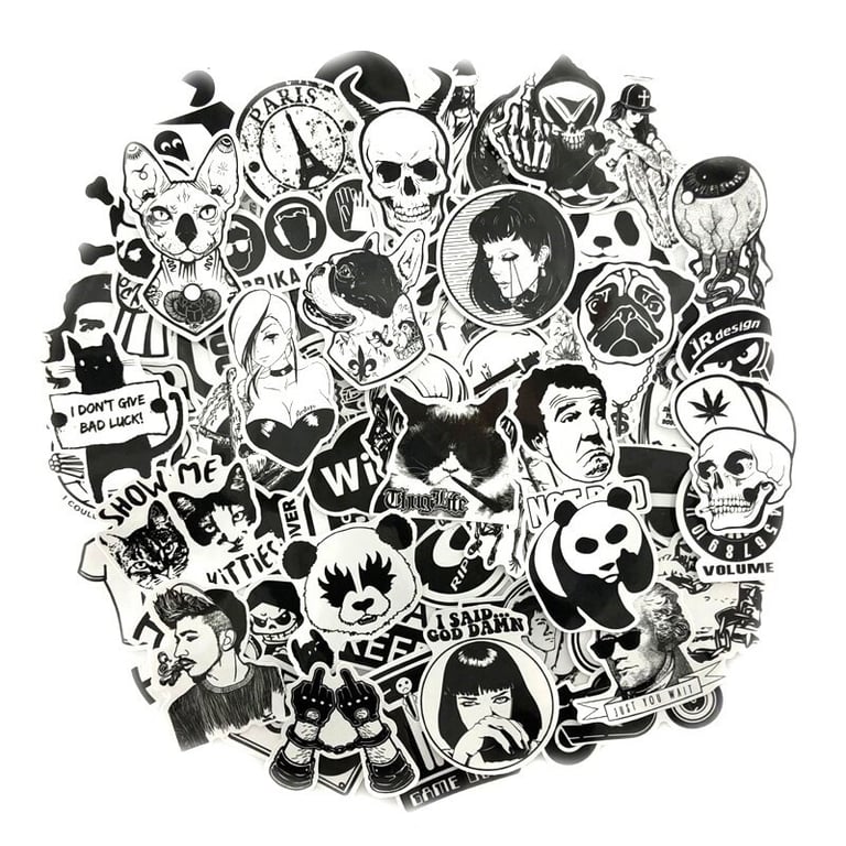 Black and White Stickers 100 pcs