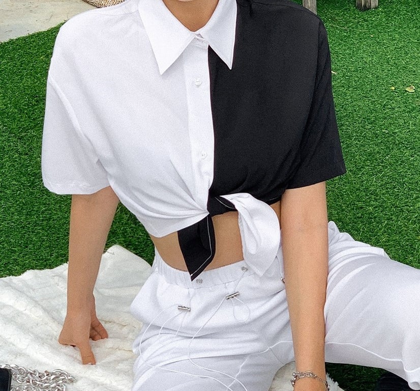 Black and white women's crop top