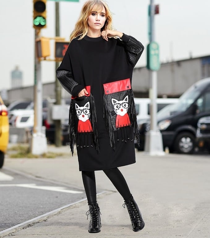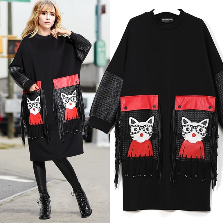 Black Autumn Dress with Print