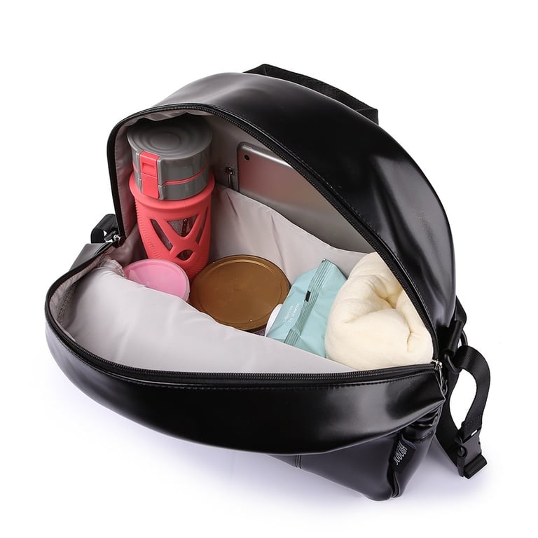 A maternity backpack for children's essentials in a modern glossy design.