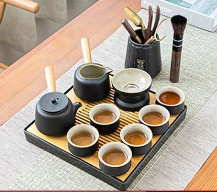 Elegant minimalist tea set for tea lovers who seek a blend of functionality, beauty and ritual. Matte black ceramic with a natural bamboo tray gives a calm and balanced impression – exactly how a proper tea ritual should look.