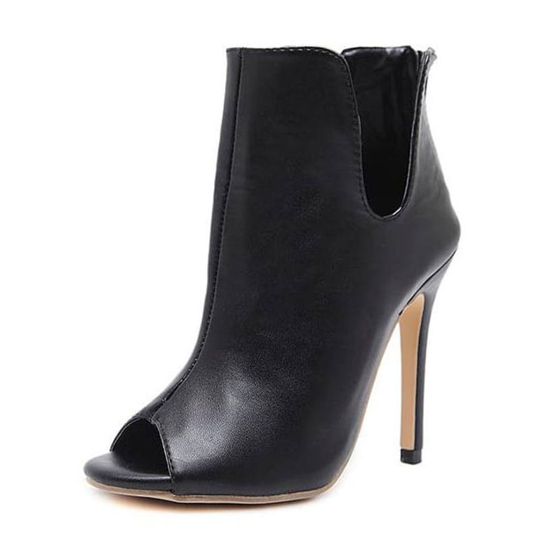 Black faux leather sexy women's heeled sandals