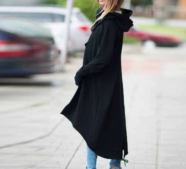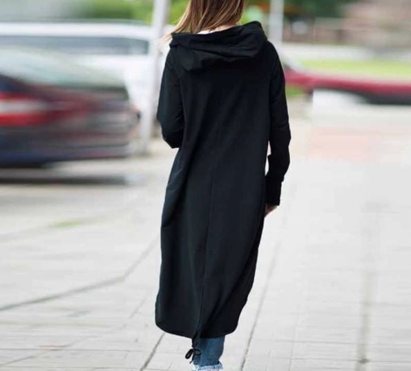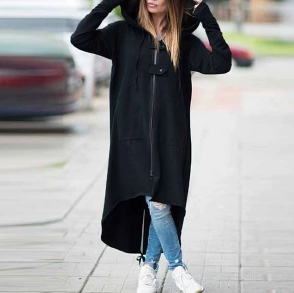 Black long autumn cardigan with a zip.