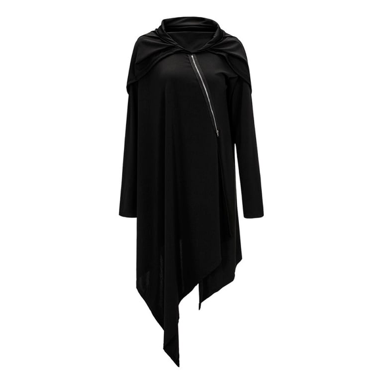 Black long hooded women's tunic with a cover-up.