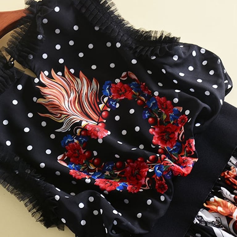 Original long black dress with floral embroidery.