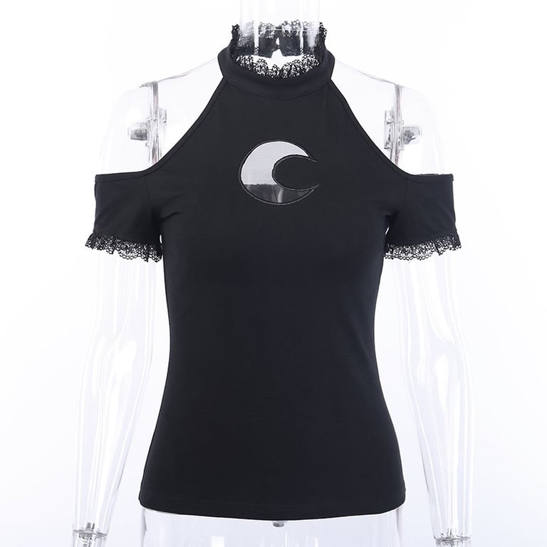 Women's Black Off-Shoulder T-Shirt