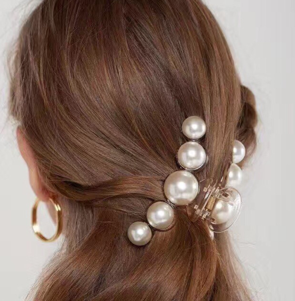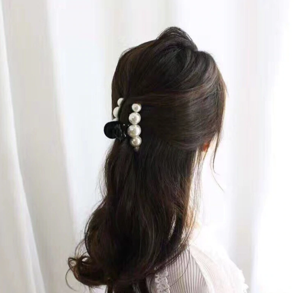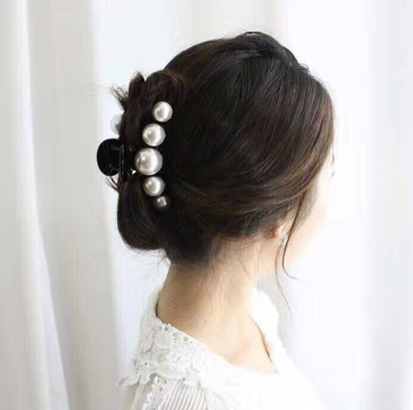 Black plastic pearl hair clip