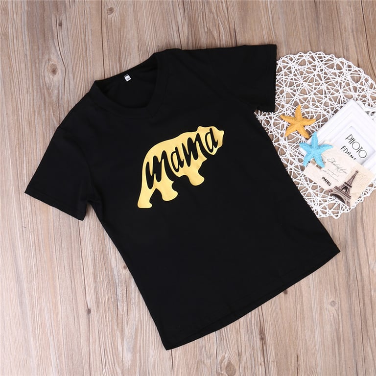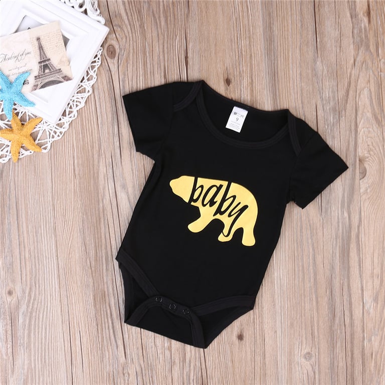 Black t-shirt for mum and bodysuit for baby.