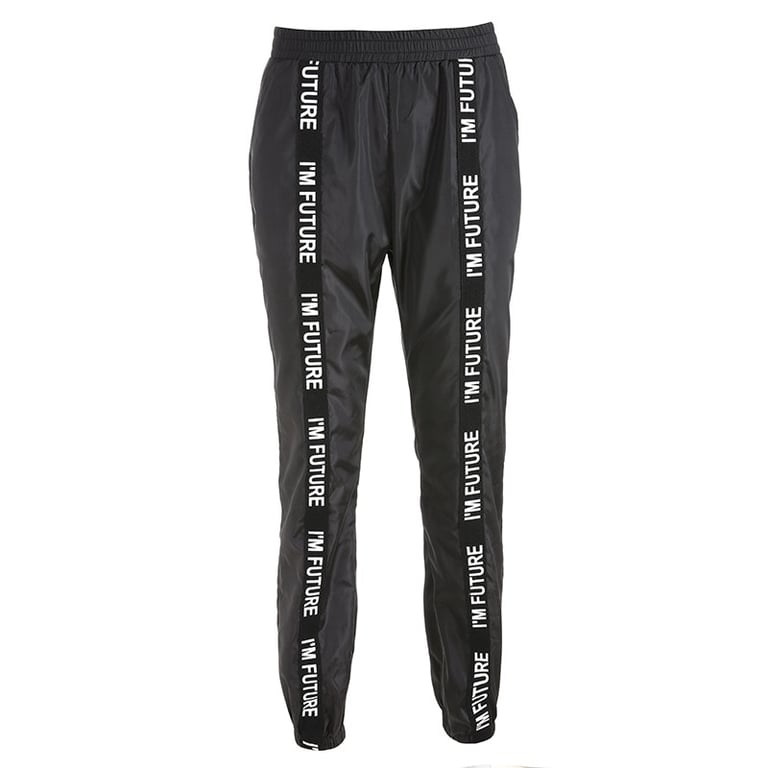Women's black jogger trousers with print
