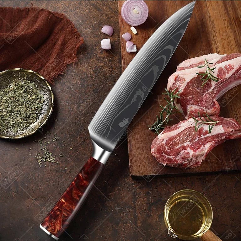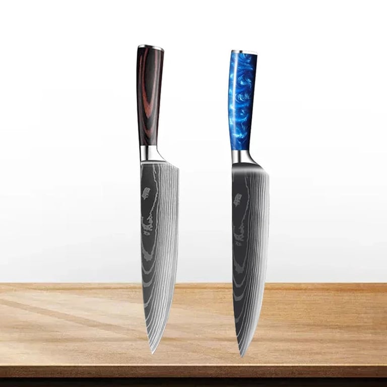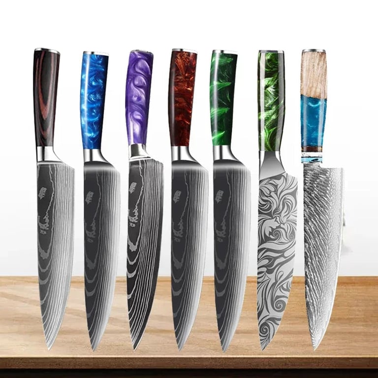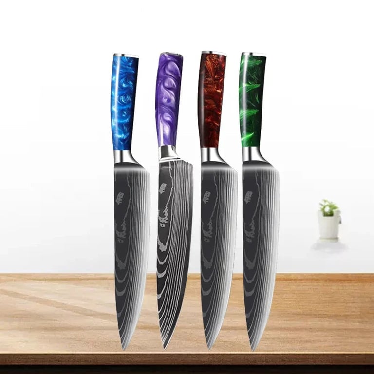 Stylish stainless steel kitchen knives bring not only top performance but also modern design to your kitchen. Each knife is equipped with a coloured ergonomic handle, which provides a comfortable and secure grip.