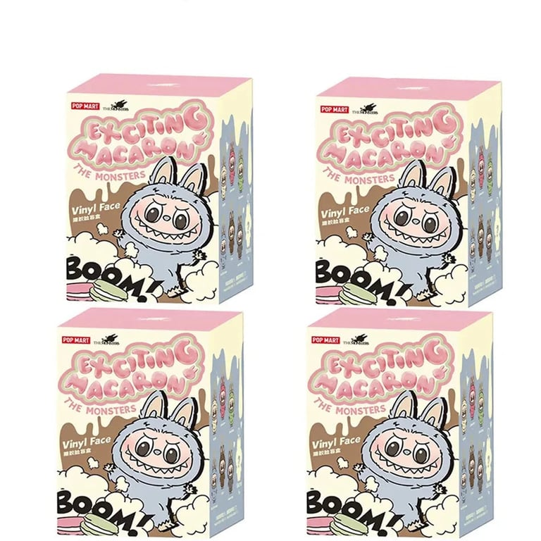 The Labubu Exciting Macaron is a popular line of figurines that brings the iconic Labubu character in a plush outfit with a vinyl face and a cheerful smile. Each figure has a different pastel colour inspired by macarons—for example cream, pink, grey, green, blue or brown. Thanks to a convenient hanging ring, the figure can easily be hung on a backpack, keys, or used as a stylish decoration. A blind box means that the exact colour and expression remain a surprise until opening.
