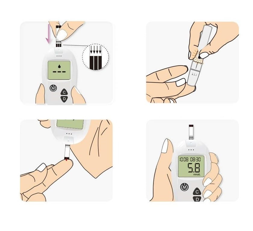 The glucose meter is a device for monitoring blood glucose levels. It features simple operation and displays values on a large, easy-to-read LCD screen. The test takes only 10 seconds. A small blood sample of 0.6 μL is required for measurement. Results are highly accurate. It is particularly suitable for individuals with blood sugar issues, such as those who are overweight, older adults, or diabetics. The glucose meter also has an internal memory that can store up to 200 records for regular monitoring. The package also includes a lancing device, 50 lancets, and 50 test strips. The test strips do not require coding.
